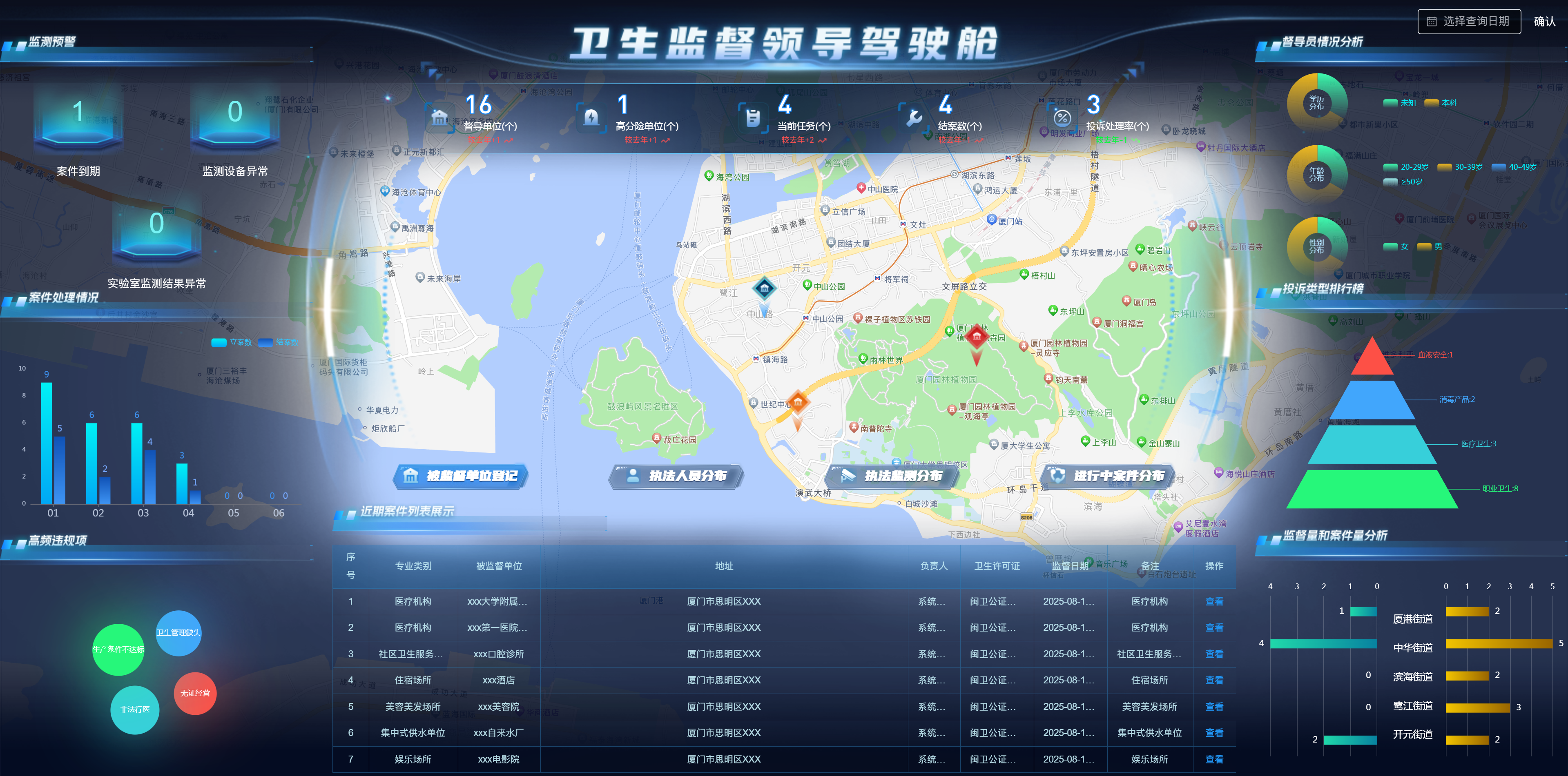 “智慧衛(wèi)監(jiān)綜合監(jiān)管服務(wù)管理系統(tǒng)”涵蓋監(jiān)督執(zhí)法應(yīng)用、非現(xiàn)場執(zhí)法應(yīng)用、碼上監(jiān)管、可視化駕駛艙、信息交換系統(tǒng)等內(nèi)容,實(shí)現(xiàn)加強(qiáng)衛(wèi)生監(jiān)督綜合執(zhí)法能力建設(shè),依法推進(jìn)衛(wèi)生監(jiān)督工作,不斷創(chuàng)新衛(wèi)生監(jiān)督執(zhí)法手段,提高衛(wèi)生監(jiān)督的監(jiān)管和應(yīng)急處置水平,通過建設(shè)智慧衛(wèi)監(jiān)系統(tǒng),將傳統(tǒng)現(xiàn)場監(jiān)管與非現(xiàn)場物聯(lián)網(wǎng)智能監(jiān)督監(jiān)測手段相結(jié)合,解決目前衛(wèi)生監(jiān)督機(jī)構(gòu)無法及時(shí)掌握和處置突發(fā)狀況的問題,做到在第一時(shí)間獲取現(xiàn)場數(shù)據(jù),在事件發(fā)生、升級(jí)前提前預(yù)警和處置,提高執(zhí)法效率。